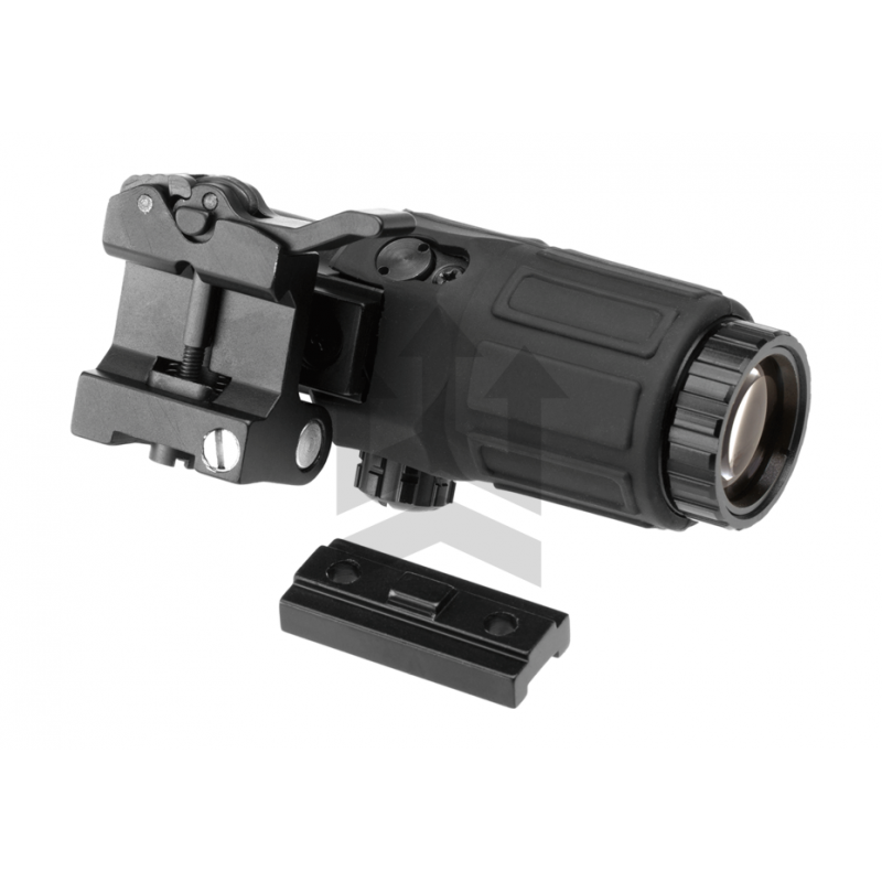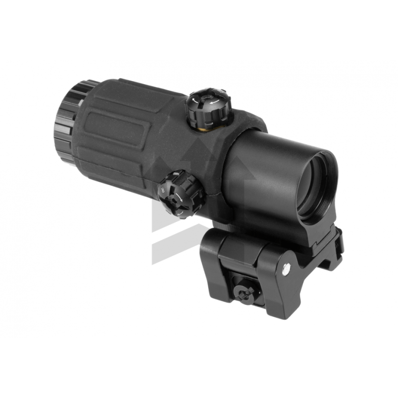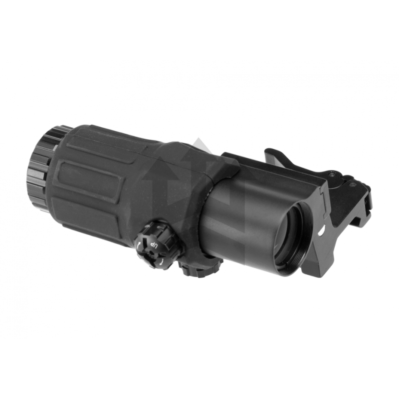 El Magnificador ET Style G33 3X de AIM se conecta a un riel estándar a través de un soporte QD para una fácil colocación y extracción. Esta unidad está diseñada para agregar un aumento de zoom fijo de 3X y trabajar en conjunto con su mira de punto rojo estándar.