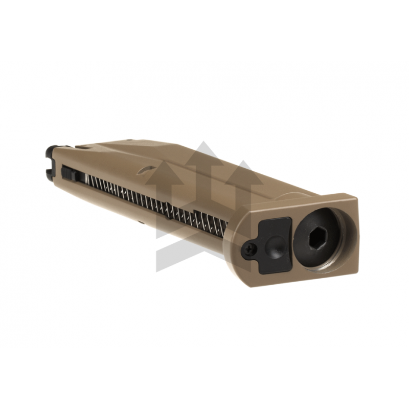 Cargador de Airsoft accionado por CO2 para la nueva y flamante Berreta M9A3 de Umarex, en color TAN y con capacidad para 22 bolas (de 6mm), este cargador es perfecto como repuesto o para tener un extra de capacidad de munición durante nuestras partidas Milsim o domingueras!