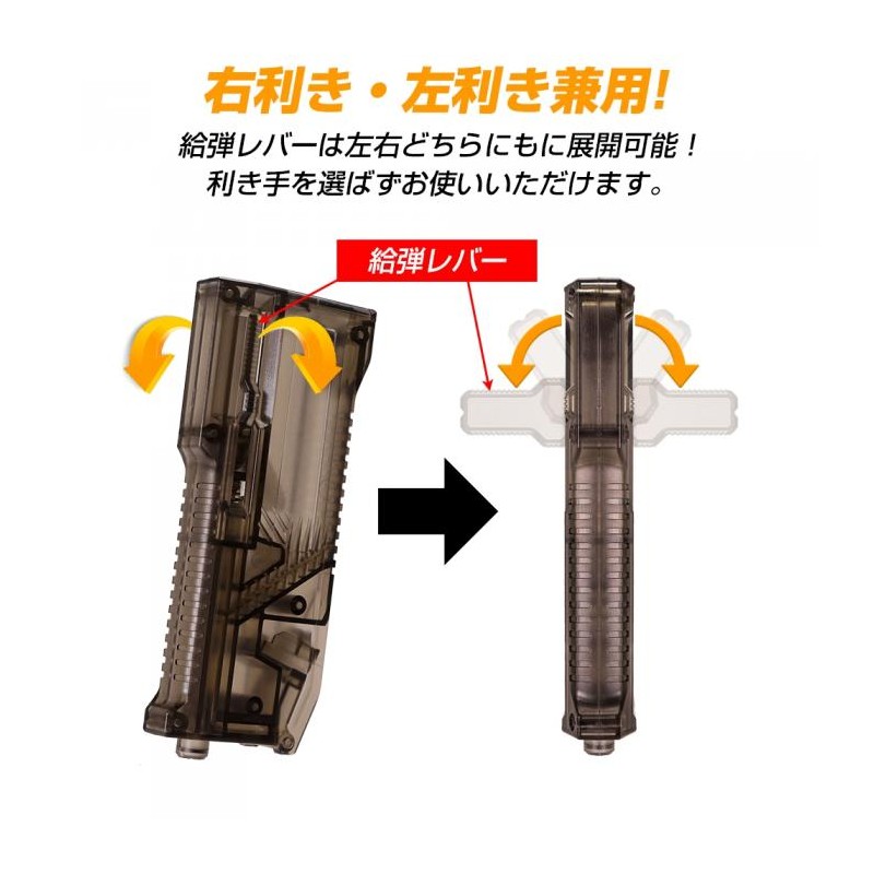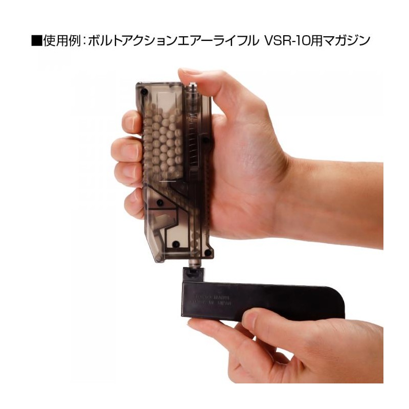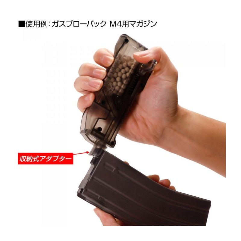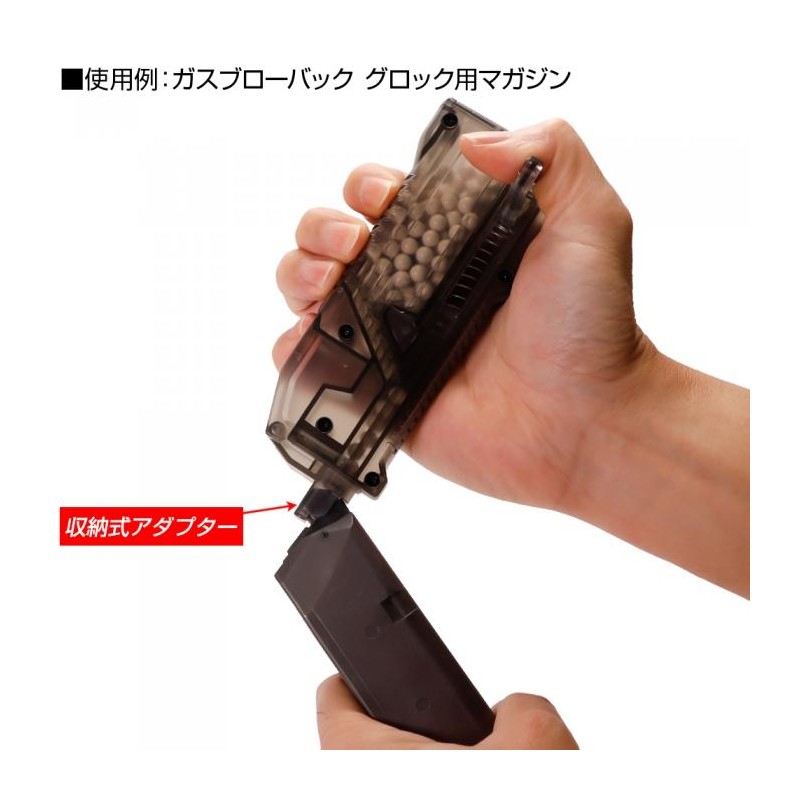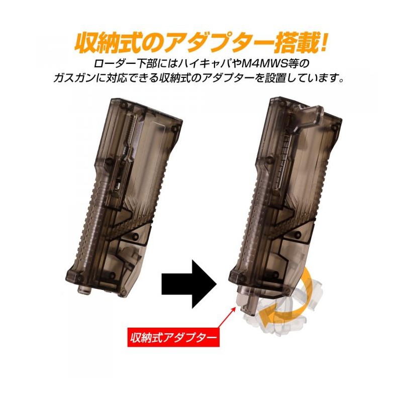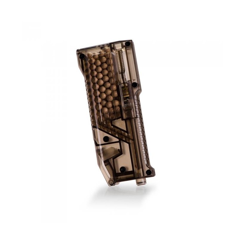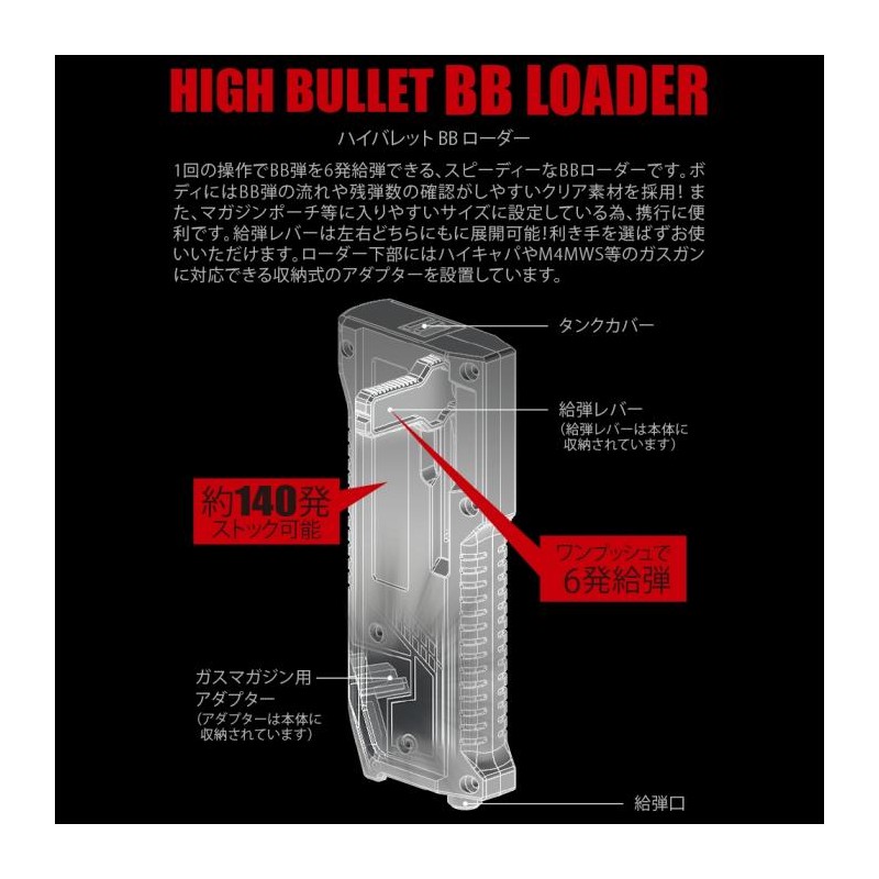 ¡El cargador LayLax High Bullet BB es su cargador todo en uno para todas sus necesidades de recarga! Cargue una amplia variedad de cargadores, incluidos los cargadores de gas AEG midcap, Hi capa y M4 MWS. No pierda más el adaptador del cargador de gas con nuestro adaptador recientemente integrado que se pliega perfectamente en la unidad para un fácil almacenamiento. Gire el émbolo hacia cualquier lado de la unidad para facilitar el agarre y recargar tanto para usuarios diestros como zurdos. Además, recarga más rápido con 6 bolas por pulsación, con hasta 140 bolas almacenadas en el depósito para recargar menos. El estuche translúcido le permite verificar las municiones restantes y su tamaño compacto permite guardarlo en una amplia variedad de bolsas y bolsillos.