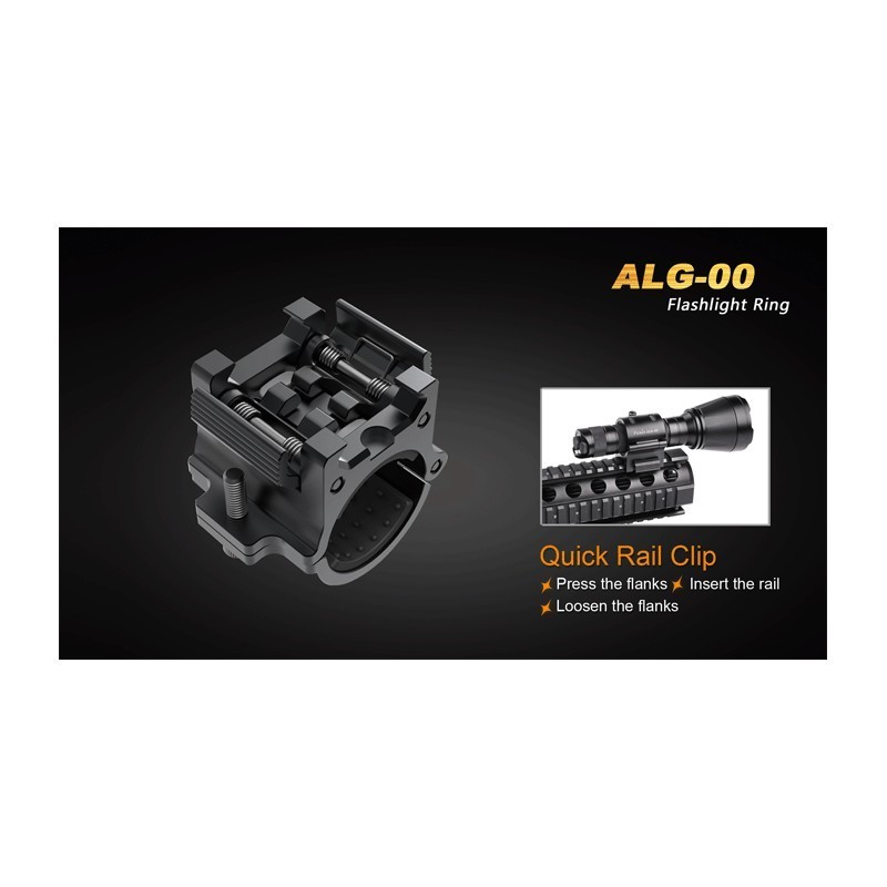 Clip de riel rápido Diseño de diámetro ajustable para adaptarse a múltiples linternas Ajustable de 22.5-26mm Aluminio mecanizado de precisión con acabado negro mate anodizado Cojín de goma antideslizante Tamaño de su montaje: