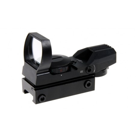 Tipo: mira réflex / punto rojo (open reflex) con retículas seleccionables.