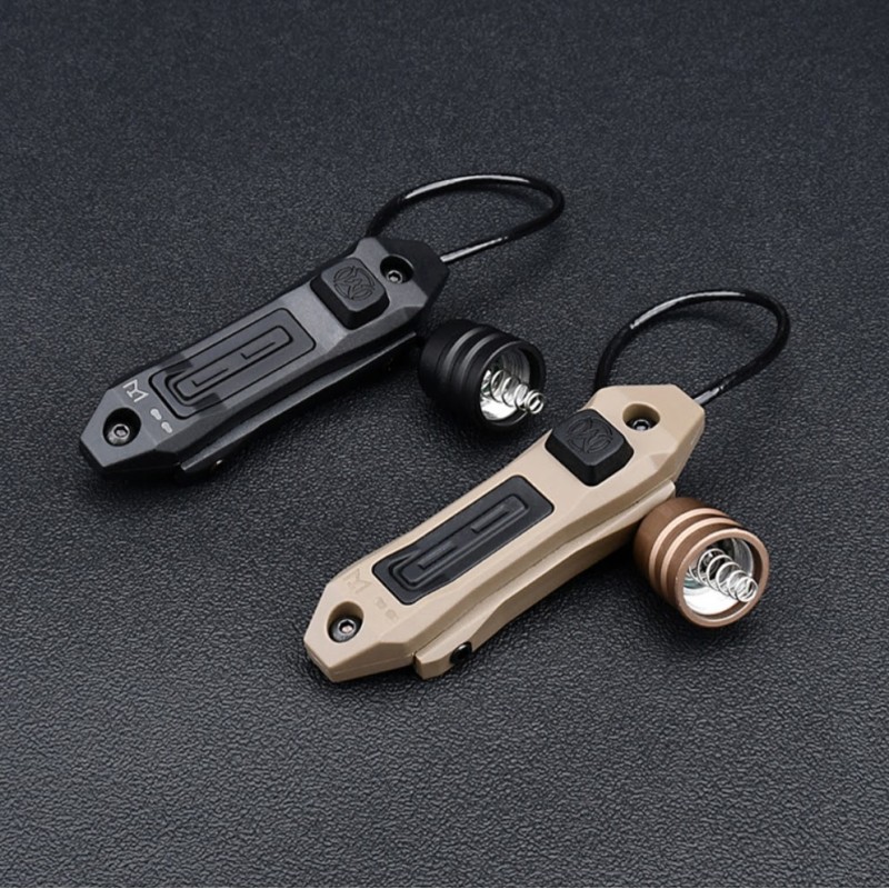 Pulsador remoto para uso conjunto de linternas. Un accesorio muy útil para evitar los molestos enganches de cables, y olvidarse de usar cuerdas, velcros o gomillas para sujetar los pulsadores de forma independiente. Cuenta con función de pulsador momentáneo e interruptor permanente.