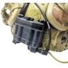 Tiene dos luces estroboscópicas IR integradas para IFF (identificación amigo/enemigo), y está fabricada con polímero reforzado con vidrio de alta densidad y contorneada para adaptarse a la mayoría de los cascos tácticos y se fija mediante velcro fijado a la superficie interior de la fuente de alimentación, lo que permite que actúe también como contrapeso.