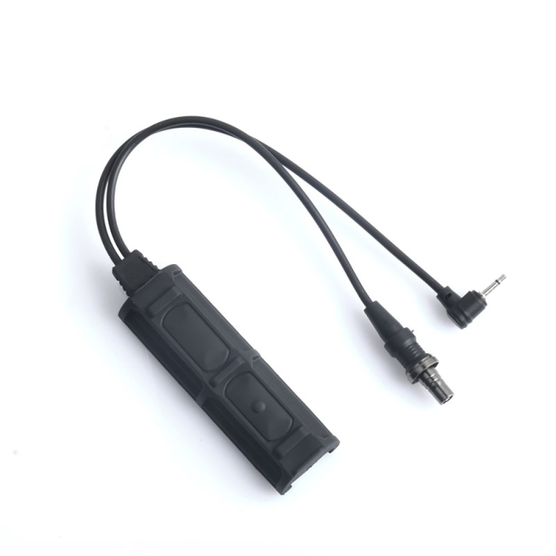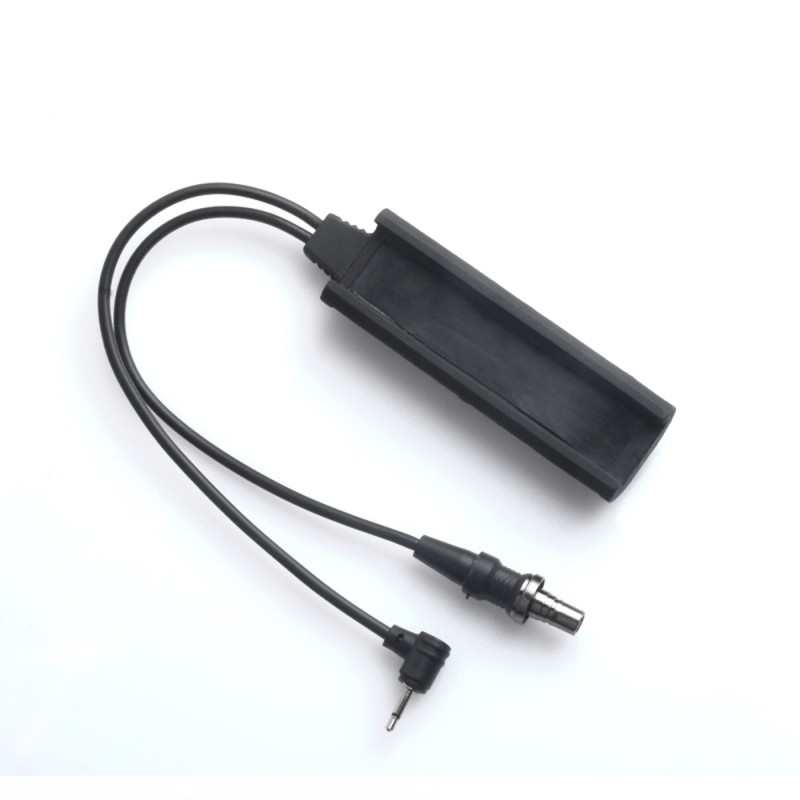 Pulsador remoto con marcajes del original. Permite activar designadores láser que tengan un plug de 2,5mm y linternas con conector estándar.