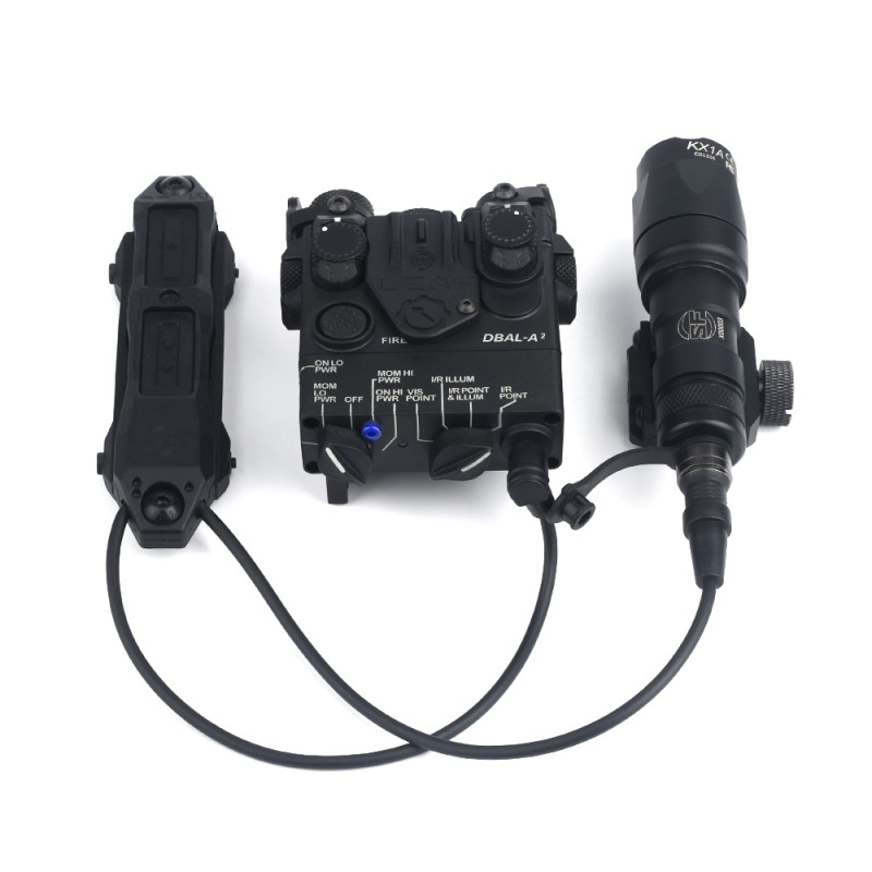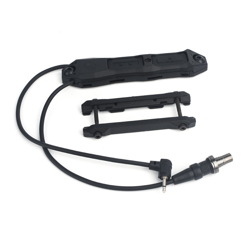 Pulsador remoto con marcajes del original. Permite activar designadores láser que tengan un plug de 2,5mm y linternas con conector estándar.