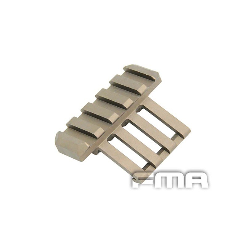Montura lateral para rail Picatinny que permite el acople de accesorios en un ángulo de 45º dejando despejada la parte superior del RIS y aprovechando un ángulo diferente para miras de punto rojo, pudiendo llevar la mira de aumentos en el rail principal y usar el punto con tan sólo un giro de réplica.
