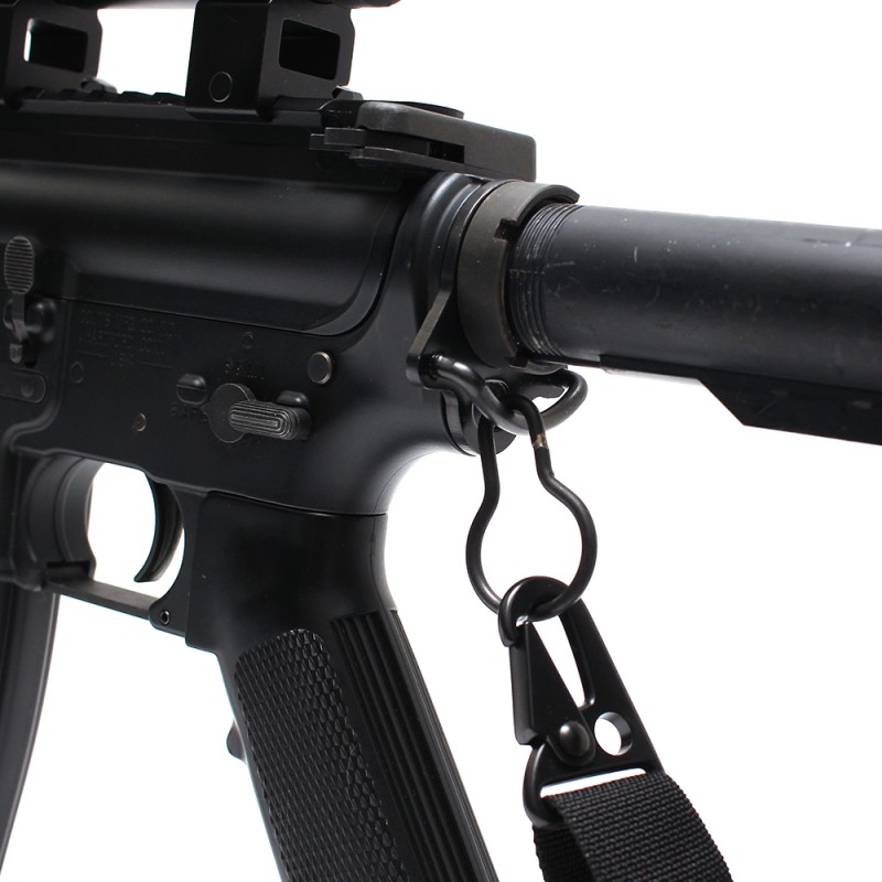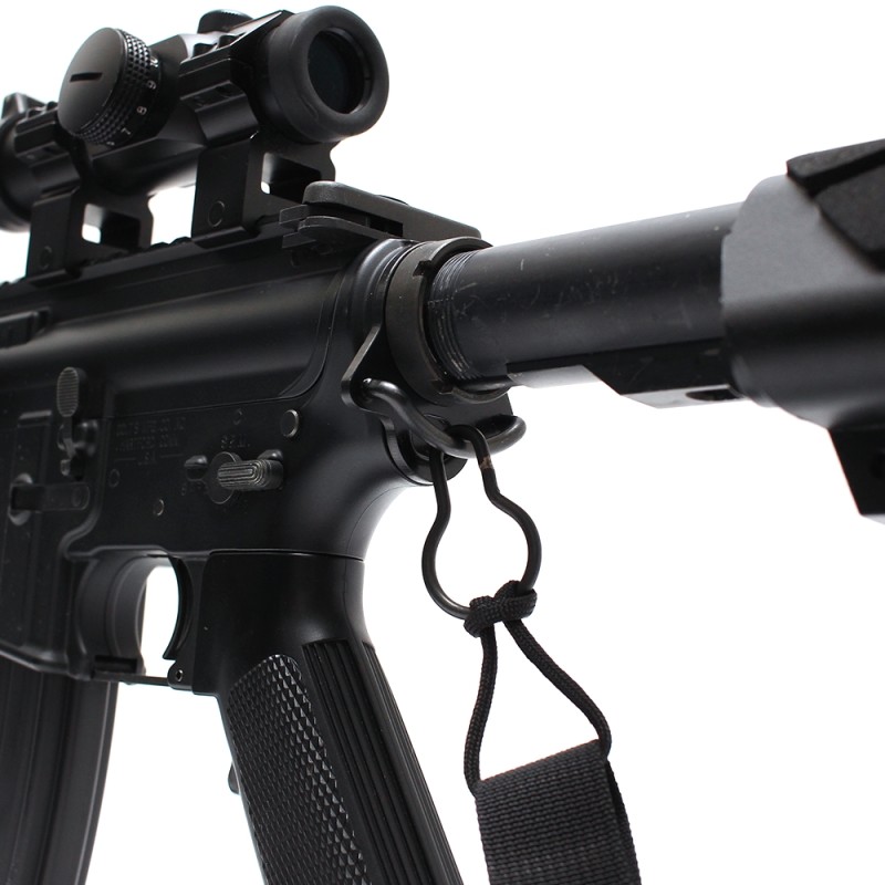 El giro en forma de arco permite el cambio de posición de la correa, siendo compatible con la serie Tokyo Marui Next Generation M4. El cabestrillo en el anillo es capaz de deslizarse libremente.