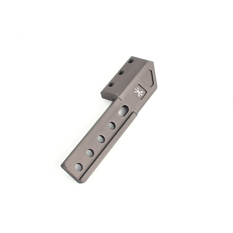 Adaptador de linterna angulado para el lado derecho, compatible con los pulsadores angulados de la misma marca. Usado para acoplar linternas y miras de hierro, dejando dichos accesorios pegados a la réplica y consiguiendo así un perfil mas reducido.