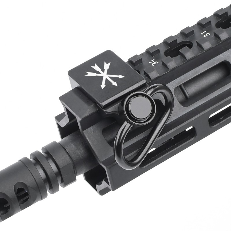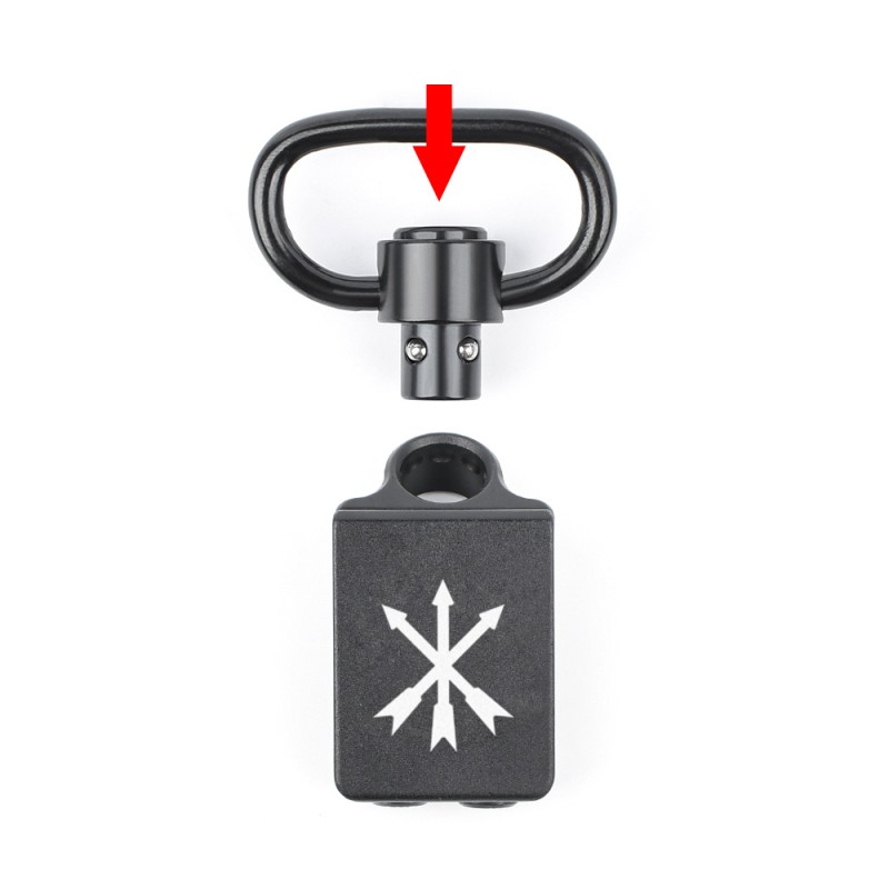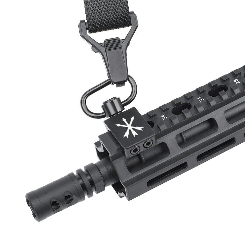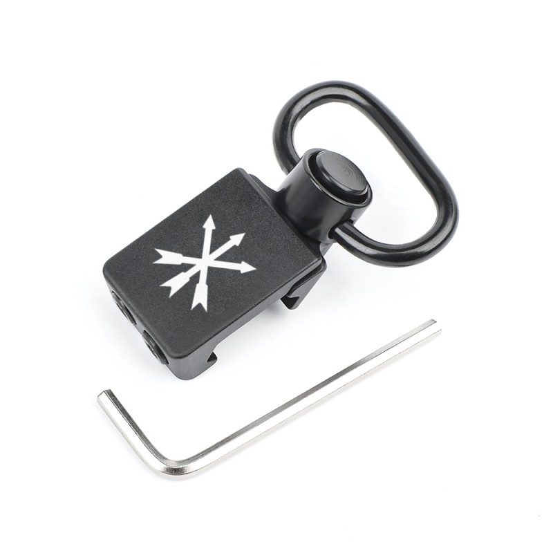 Montura metálica para rail Picatinny, con anilla QD para poder enganchar una correa porta fusil que puede ser desenganchada en cuestión de segundos gracias a su botón central que suelta la anilla giratoria. El material metálico le da una gran tenacidad y robustez al conjunto lo cual permite llevar nuestra réplica de Airsoft de forma segura y cómoda.