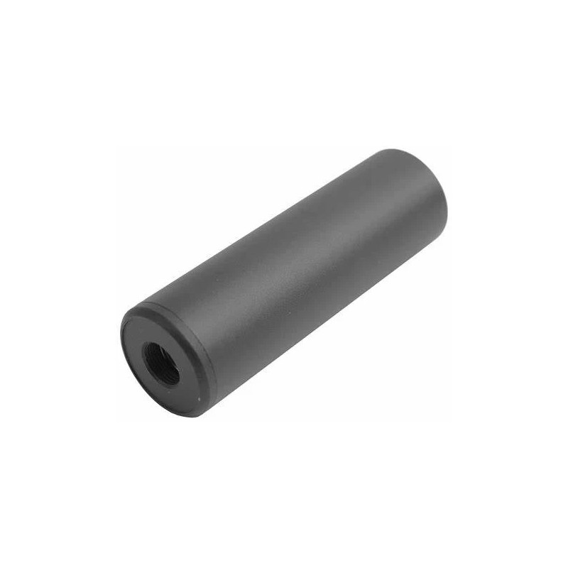 Con este silenciador de 110 mm la réplica gana un plus visual contundente y equilibrado. Su longitud moderada hace que no sobresalga demasiado, manteniendo una estética compacta y táctica. Construido en aluminio, resulta ligero pero resistente. Su interior incorpora material absorbente para suavizar el efecto sónico, aunque no lo convierte en un supresor real: su propósito principal es estilizar y decorar, manteniendo funcionalidad moderada para uso en airsoft.