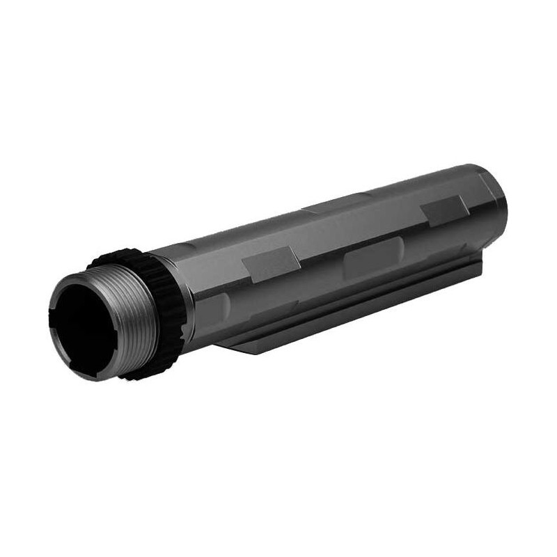 Compatible con culatas retráctiles tipo M4, permitiendo montar culatas ajustables o telescópicas.