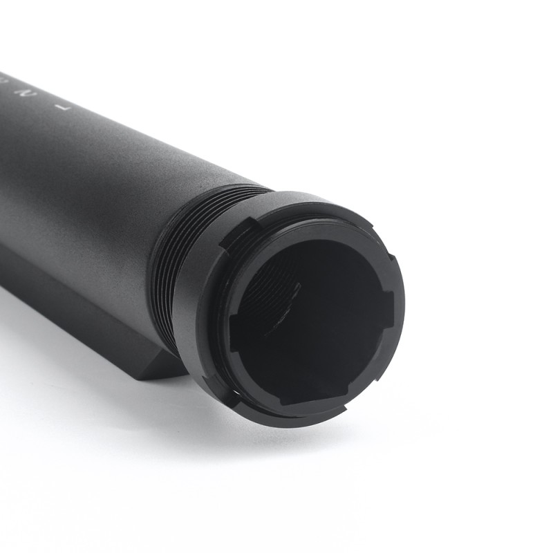 Tubo de culata de 6 posiciones para M4 de Airsoft AEG, fabricada en aluminio tiene una resistencia perfecta para soportar toda la tensión que hagamos con el hombro sobre ella y por los posibles golpes o roces que puedan llevarse durante las partidas.