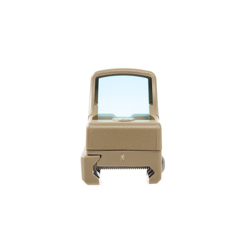 Micro Pro Sigth FDE de Tokyo Marui es un visor holográfico de pequeño tamaño con una lente de resina de recubrimiento de rubí. Esta lente es muy duradera y resistente a los impactos de una bola BB. Tiene una fucnión de ajuste de dos intensidades de luz (baja y alta) siendo apta para el exterior durante el día y en lugares oscuros.