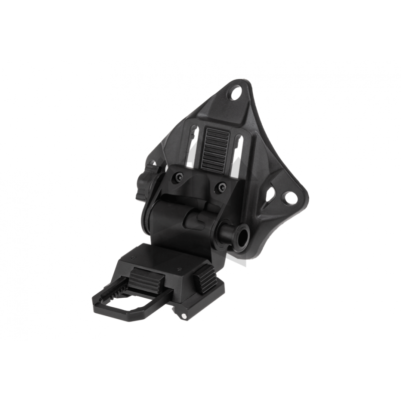 Montura tipo Wilcox L4 G19 con marcajes fabricada en aluminio CNC, la montura al casco es de policarbonato y el brazo de aluminio. Formando un accesorio muy ligero y resistente perfecto para llevar equipos de visión nocturna sin tener que comprar la montura original valorada en mas de 500,00€