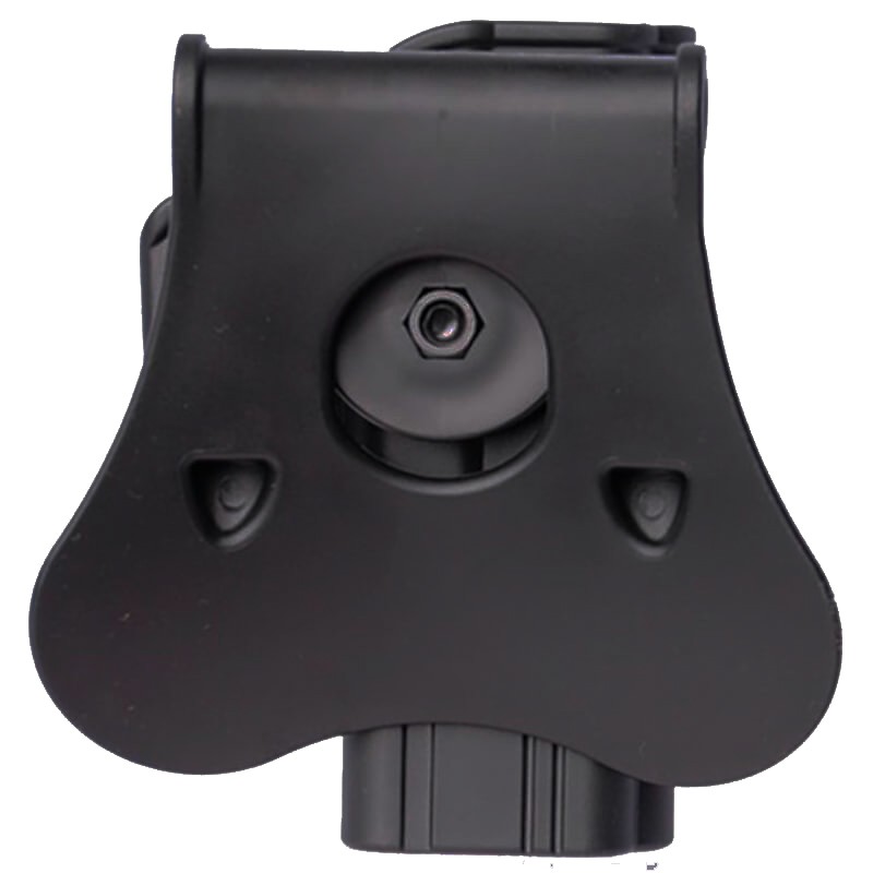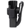 Pistolera de Glock para zurdo. Fabricada en polímero rígido de alta resistencia y con seguro de botón para un anclaje máximo de la pistola.