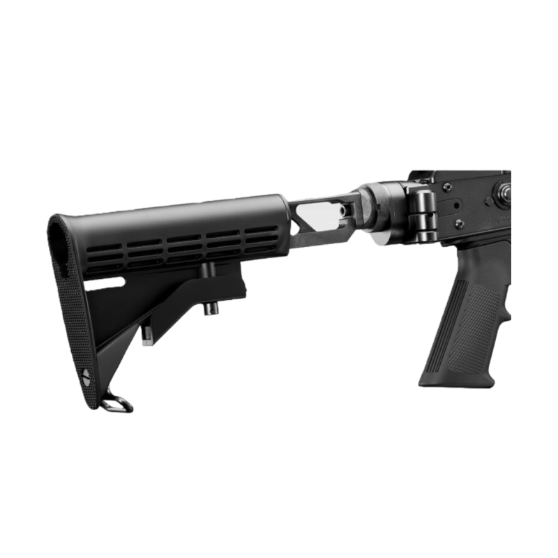 Cuenta además con una culata tipo M4, ajustable en 6 posiciones y además plegable hacia uno de los lados del cuerpo del arma.