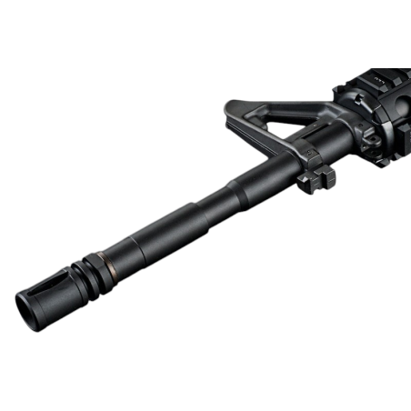 Incorpora el sistema ZET que garantiza la seguridad y la longevidad del porta-pernos, asegurándose de que durará mucho tiempo. El sistema ZET fue desarrollado para el fusil de asalto GBB M4 MWS. Gracias a su mecanismo de fácil manejo, a la capacidad de expansión para las piezas opcionales y a su longitud media puede ser utilizado tanto en espacios amplios como estrechos.