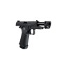 La variante con compensador mantiene todas las virtudes de la Vanguard Optic-Ready y añade un toque táctico y funcional en la boca de fuego: el compensador aporta una silueta más agresiva y ayuda a estabilizar ligeros movimientos de boca (muzzle rise), favoreciendo una recuperación algo más rápida entre disparos cortos o seguidos —sin alterar la ergonomía ni la compatibilidad con las mejoras que puedas instalar. Esta versión es ideal si buscas una apariencia más “race gun” y cierto beneficio práctico en control de los disparos en tiradas cortas, manteniendo la misma base fiable para upgrades.