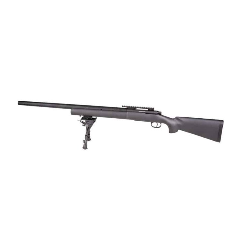 Este fusil de francotirador estéticamente está inspirado en el diseño del conocido M24 real e internamente dispone de piezas de gran calidad y reforzadas. Tiene un conjunto de cilindro de acero con pistón reforzado y un gatillo reforzado de serie con retén de acero que evita que se pueda romper de forma prematura al usar muelles de mas de 500 fps. También dispone de un cañón de precisión de 6.02mm con corte VSR.