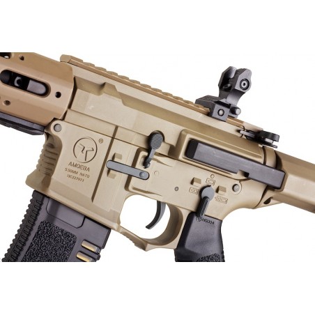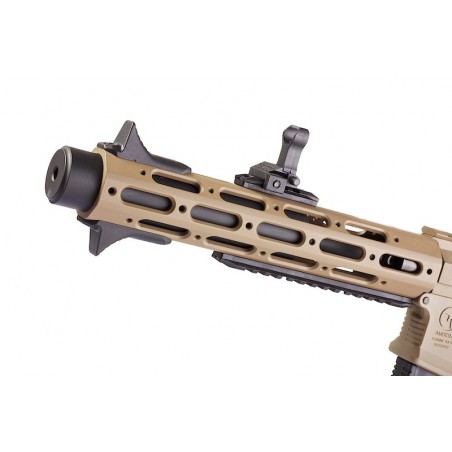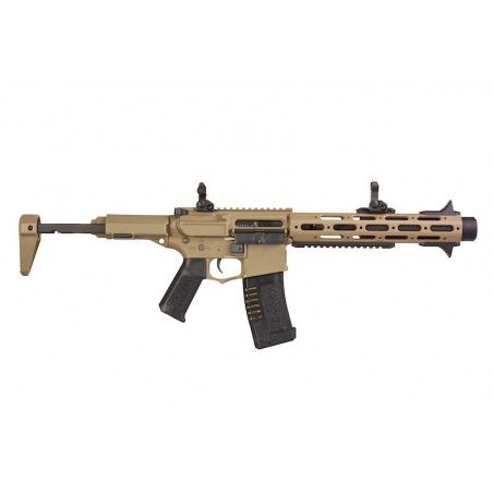 Réplica eléctrica de airsoft que imita el famoso rifle AAC Honey Badger PDW. Se trata de un fusil AEG compacto, ideal para juegos de CQB (close-quarters combat), que combina un diseño moderno, ligereza y prestaciones especiales como un sistema electrónico de disparo programable. La réplica funciona con batería y ofrece modos de disparo ajustables, buena precisión y componentes robustos para uso recreativo.