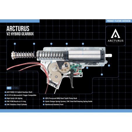 ARCTURUS Advanced Tactical MOD1 PDW FE™ (Funciones mejoradas) AEG es la última versión de 2024 con ETU ARCTURUS V3 FE™ integrado y caja de engranajes QD estándar V3. Advanced Tactical MOD1 PDW FE™ permite el modo de 2 ráfagas, funciones programables avanzadas de ETU y recorrido del gatillo ajustable mediante tope ajustable.