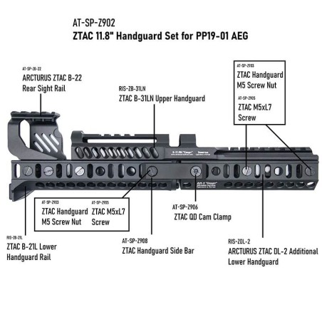- Longitud del guardamanos: 300 mm (11,8 pulgadas)