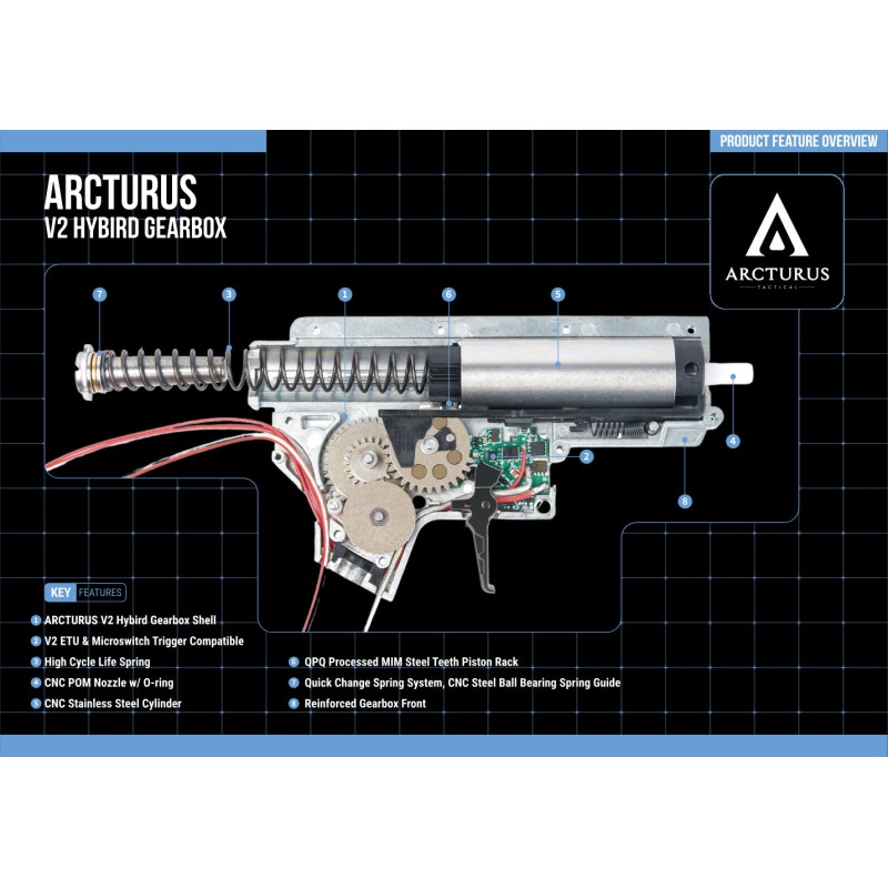 La ARCTURUS K9T-CQ FE™ AEG es la última versión de 2024 con ETU ARCTURUS V3 FE™ integrado y caja de cambios V3 QD. El ARCTURUS K9T-CQ FE™ destaca por su guardamanos de aluminio CNC estilo ZTAC, manija de carga y culata plegable ajustable. El guardamanos cuenta con el sistema de montaje BASIS para facilitar la instalación de accesorios. El ARCTURUS K9T-CQ FE™ permite funciones programables avanzadas de ETU y un recorrido del gatillo ajustable mediante un tope ajustable.