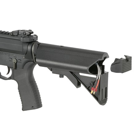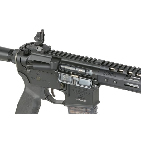Externamente, el rifle de airsoft Shorty tiene todas las marcas originales de Noveske, puede encontrarlo en el receptor inferior N4 y superior Gen 3, en el guardamanos NSR-9 e incluso en la cubierta antipolvo está grabado 300 BLK. La revista es una réplica de la revista Lancer Systems L5 AWM con marcas "300 Blackout". Todas estas características le dan un aspecto más realista a este rifle de airsoft. El cuerpo del Noveske AEG es de construcción completamente metálica con un cañón de 10,5 pulgadas de largo, lo que lo convierte en una buena alternativa para la batalla de CQB, el guardamanos NSR-9 de 9 pulgadas está en el sistema M-LOCK que le brinda la opción de instalar accesorios dedicados, en la parte superior, como en el receptor superior, encontrará un sistema de riel Picatinny estándar que brinda la posibilidad de instalar miras ópticas, la ergonomía y el manejo de este rifle de airsoft es posible gracias al punto de fijación QD múltiple para cabestrillo ubicado en la culata y en la placa final de la parte inferior.