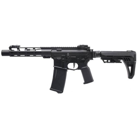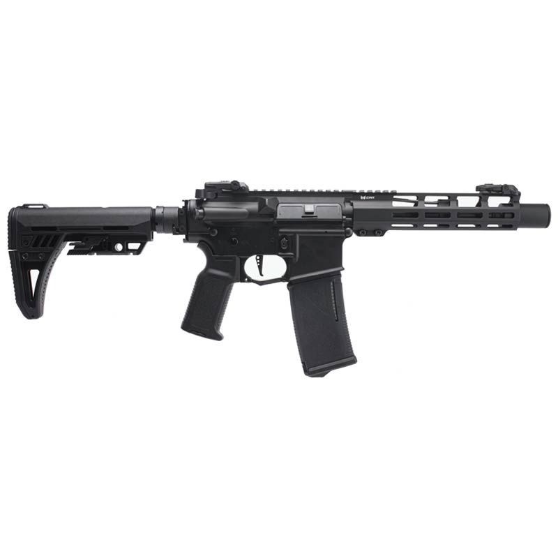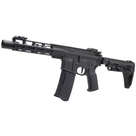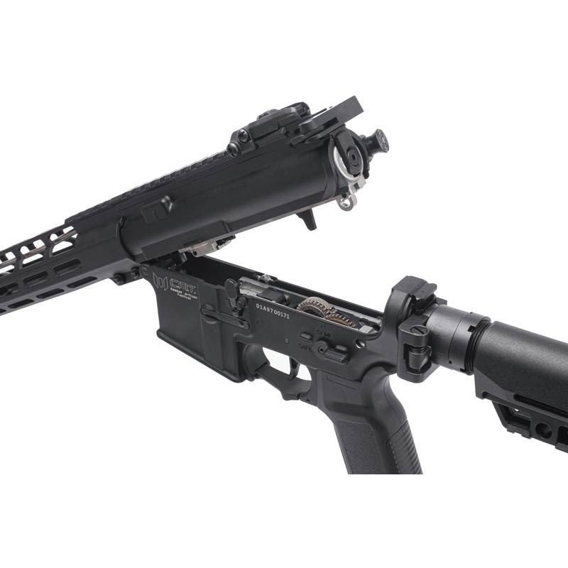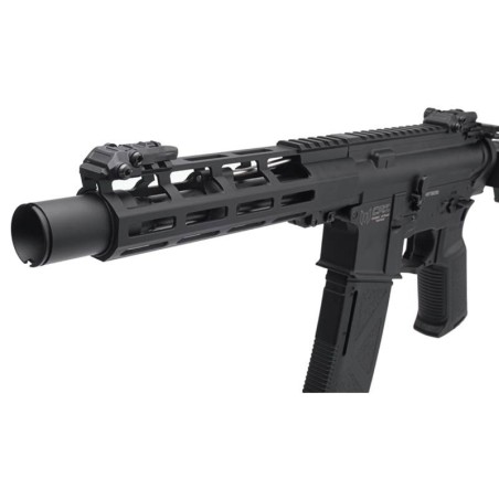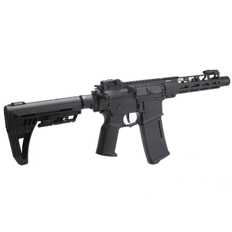 El AR-15 Explorer AR AEG de 10" incluye guardamanos y cajón de mecanismos de aluminio, y una culata modular plegable PICATINNY 1913 ajustable. El guardamanos cuenta con un riel M-LOK con sistema de montaje Picatinny para facilitar la instalación de accesorios. El AEG cuenta con un MOSFET DEANS en línea ultracompacto de 11.1 V, compatible con baterías de litio, con un motor de alto rendimiento de 24 kΩ y piñón de acero MIM para una respuesta rápida del gatillo. Incorpora una caja de engranajes dividida para facilitar el acceso y el ajuste. La caja de engranajes incluye un engranaje mecánico de sector de preamartillado para ajustes.