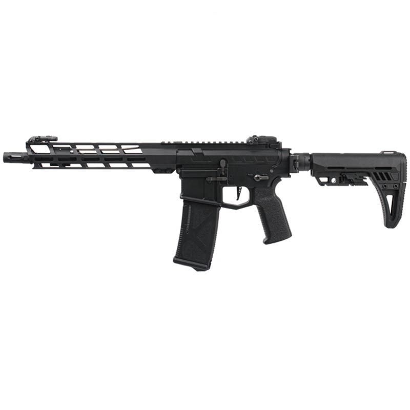 ARCTURUS X C.A.T. El versátil AR-15 AR AEG de 10" incluye un guardamanos de aluminio, una manija de carga de polímero y una culata modular plegable PICATINNY 1913 ajustable. El guardamanos cuenta con un riel M-LOK con sistema de montaje Picatinny para facilitar el montaje de accesorios. El AEG cuenta con un MOSFET DEANS en línea ultracompacto de 11.1 V, compatible con baterías LIPO, con un motor de alto rendimiento de 24 kΩ y piñón de acero MIM para una respuesta rápida del gatillo. Incluye una caja de engranajes dividida para facilitar el acceso y el ajuste. La caja de engranajes incluye un engranaje sectorial de preamartillado mecánico para ajustes. Incluye un pozo de cargador intercambiable que permite cambiar a cargadores M4, AK o PCC.