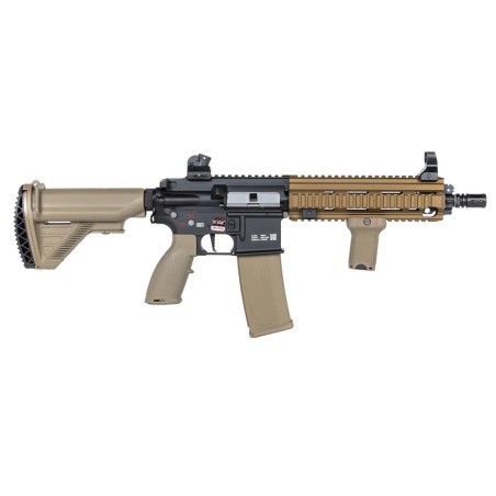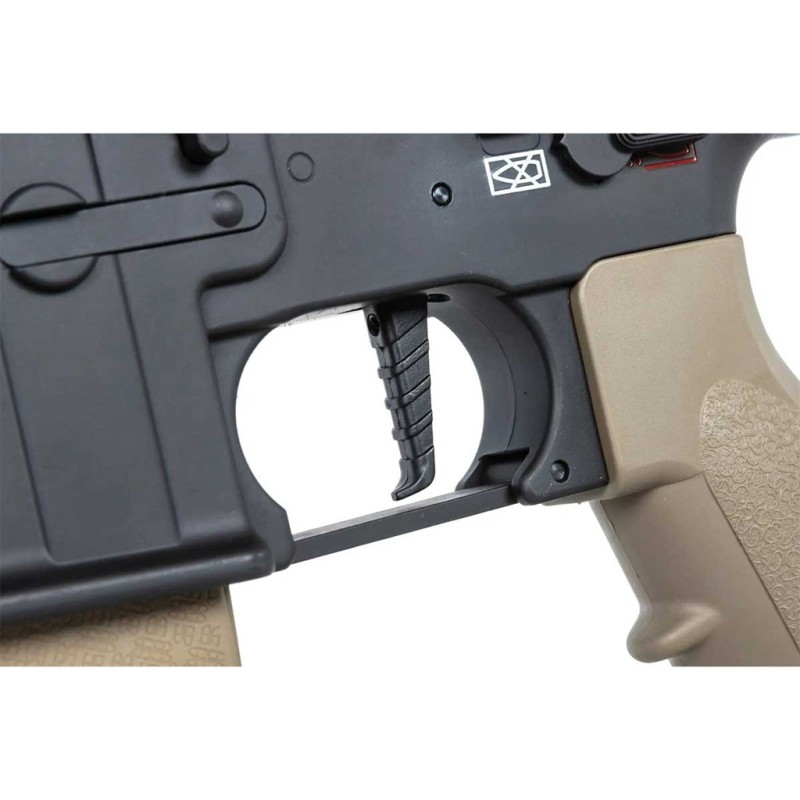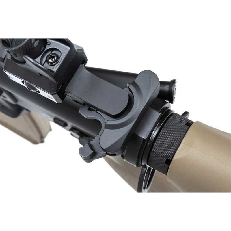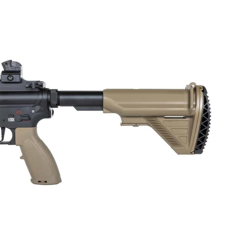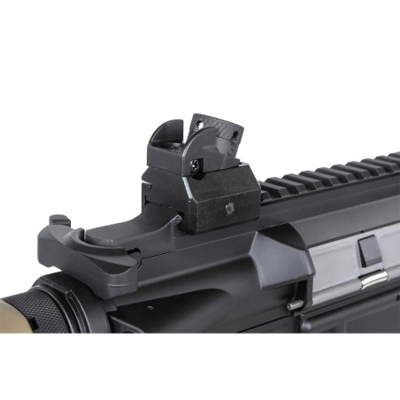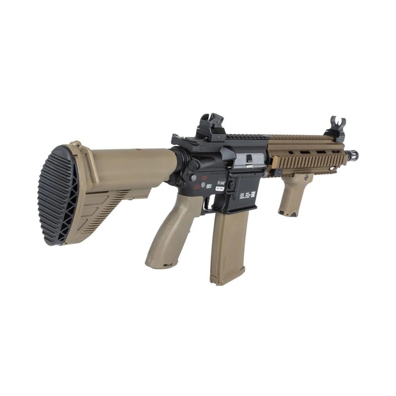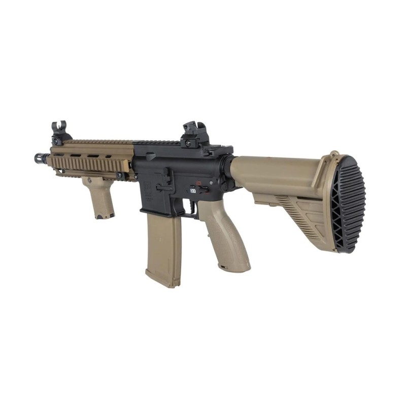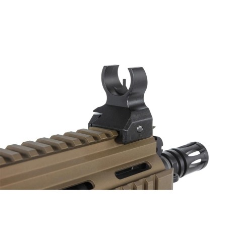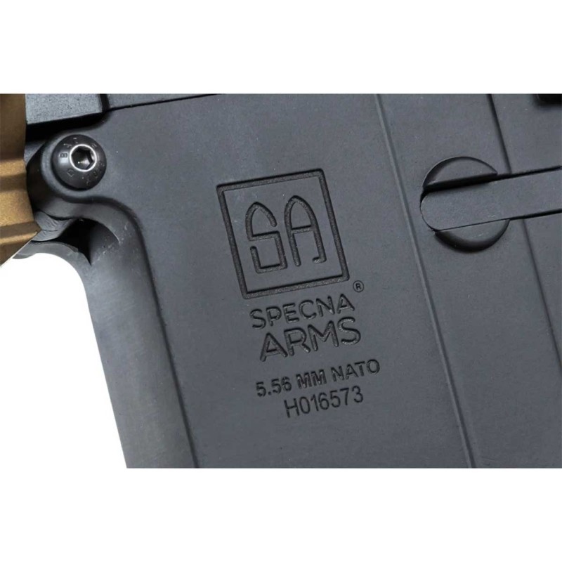 Esta es la descripción del fusil de airsoft Specna Arms Prime SA-PH20 HAL ETU Brushless en acabado negro y bronce, una réplica eléctrica (AEG) inspirada en el diseño HK416. Está diseñada para ofrecer alto rendimiento, precisión y fiabilidad desde el primer disparo, con electrónica avanzada HAL ETU y motor sin escobillas integrados de fábrica.