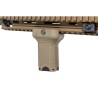 Guardamanos metálico y rieles compatibles Picatinny para accesorios tácticos.
