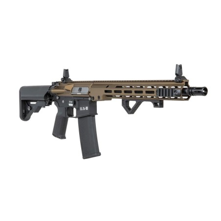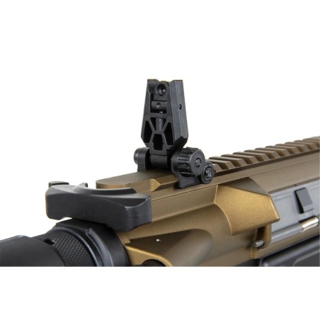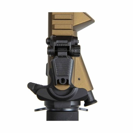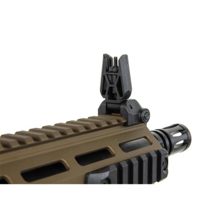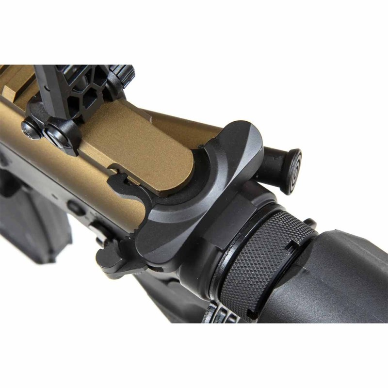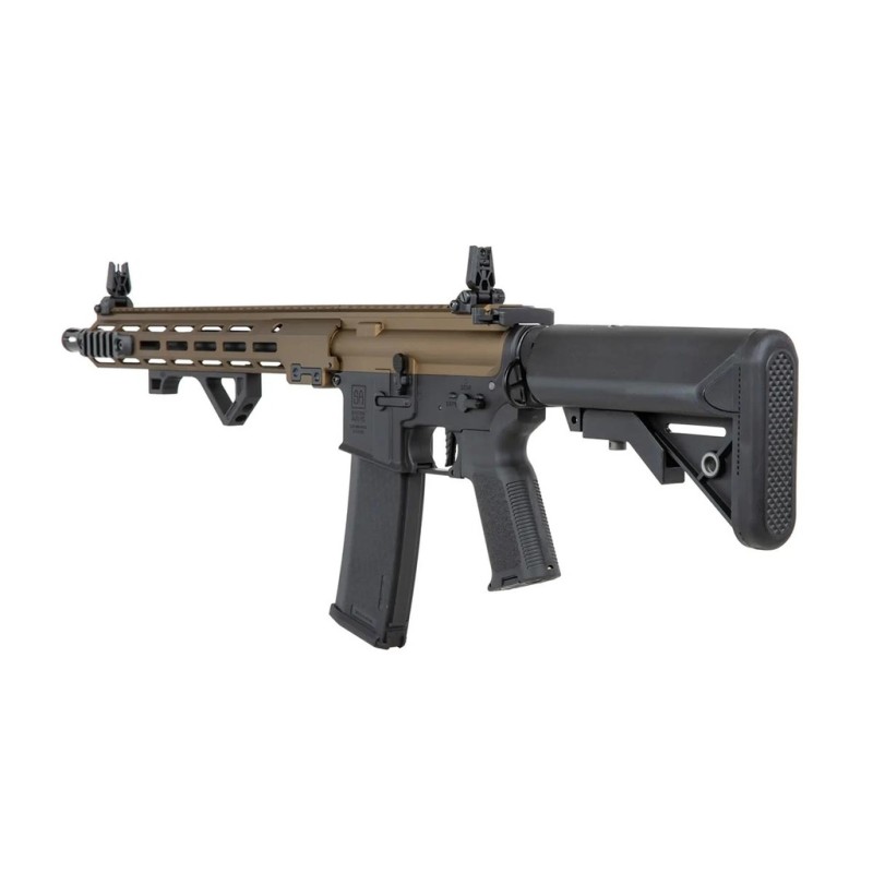 Se trata de una réplica de fusil de asalto airsoft tipo M4, modelo Prime SA-P22 HAL ETU Brushless en color negro y bronce, diseñada para ofrecer un rendimiento elevado inmediato sin necesidad de modificaciones adicionales. Equipada con electrónica avanzada (HAL ETU) y un motor brushless de alto rendimiento, esta AEG combina precisión, robustez y versatilidad para juegos recreativos o competitivos de airsoft.