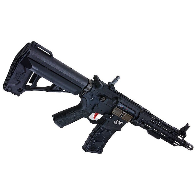 Internamente el VFC Avalon Samurai EDGE lleva instalada el gearbox ECS con el sistema GATE ASTER. A su vez, esto convierte instantáneamente a esta AEG en una réplica lista para usar. GATE ASTER cuenta con componentes electrónicos programables, como un sensor de proximidad del disparador que le permite ajustar 250 configuraciones de sensibilidad del disparador, una función de disparador binario como configuración básica, un sensor de leva de engranaje óptico que admite todo tipo de engranajes y le permite programar el modo de disparo de armas de semi/completamente automático a semi/ráfaga, por ejemplo. Sumándose a esta impresionante lista, la Samurai EDGE viene de serie con componentes internos de Maple Leaf, como el hop-up bucking y un cañón interno de precisión que permite que sus agrupaciones sean más ajustadas y tengan una capacidad de alcance extendido. Por último, el Samurai EDGE viene preparado para Deans (T-Plugs).