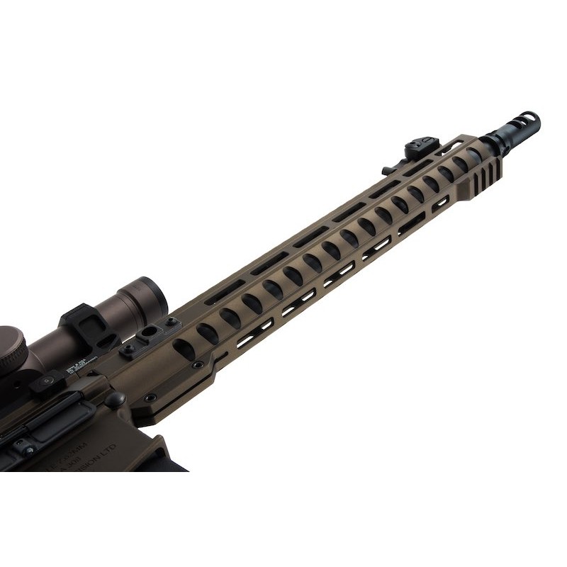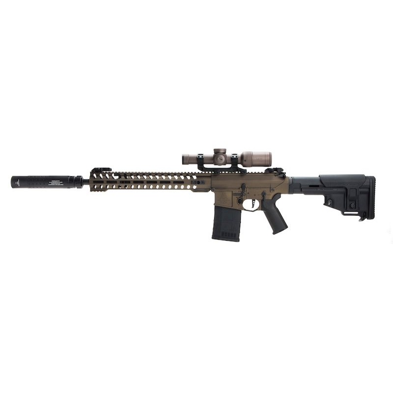 La inclusión de una mira de aumentos, 2 cargadores mid-cap de estética 7.62 y un supresor brutal con sistema de enganche rápido y marcajes hace de este rifle una de las mejores opciones y más interesantes en cuanto a calidad-precio.