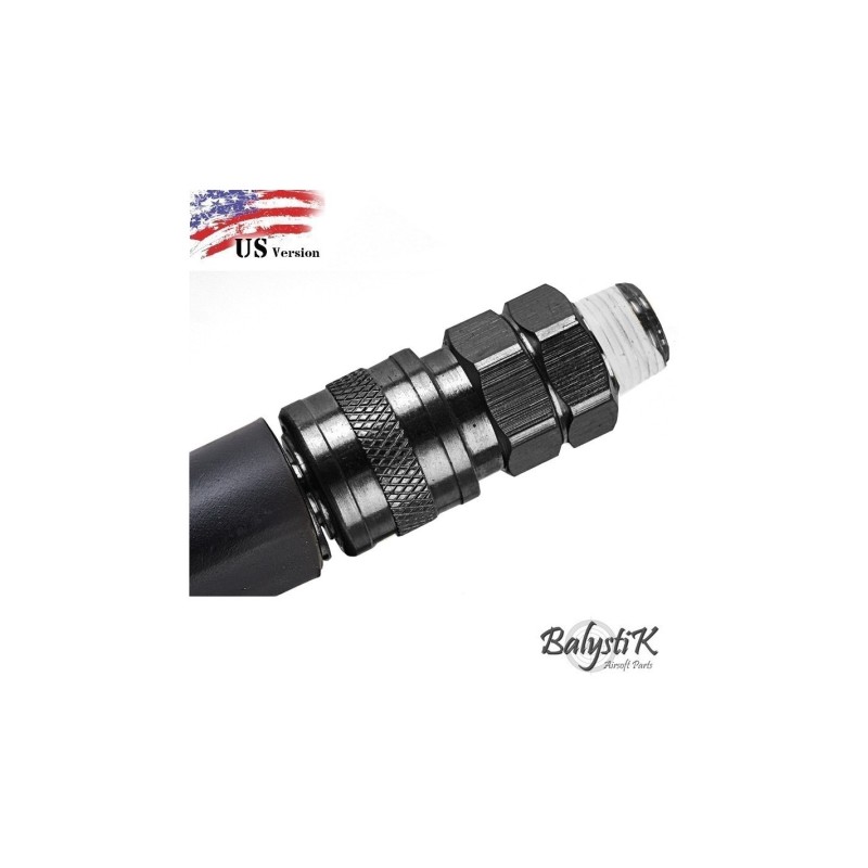 La línea Balystik HPA Braided Complete Set es un conjunto completo de conexión de aire de alta presión diseñado para sistemas HPA en réplicas de airsoft. Su función es unir el regulador con la réplica mediante una manguera reforzada, permitiendo un flujo de aire estable, seguro y eficiente. Incorpora conectores rápidos que facilitan la conexión y desconexión sin pérdida de presión, mejorando la comodidad y el rendimiento durante el uso.