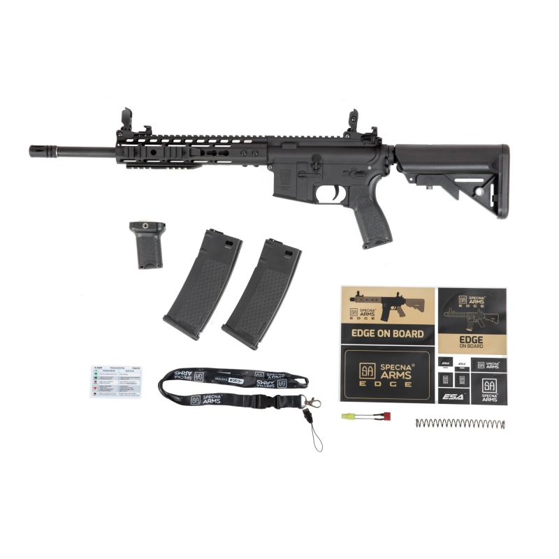 Réplica de carabina Specna Arms RRA SA-E09 EDGE. Nueva gama Edge de la marca Specna Arms con bastantes mejoras respecto a la generación anterior. Mosfet integral Fabricado por la prestigiosa marca Gate, pistón con dientes totalmente metálicos, boquilla metálica con junta tórica, cañón de precisión de 6,03 mm y cámara tipo Prowin. En esta versión de borde, todos los modelos tienen un cambio de rueda fácil que nos permite cambiar la rueda en 1 minuto sin conocimientos mecánicos, sin una mejor comprensión.