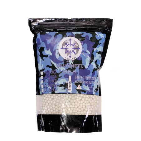 Nueva gama de bolas Infiniti, fabricadas en Taiwán con un grado de precisión increíble, perfectamente pulidas y con un diámetro casi perfecto con un error de centésimas de milímetro. Si buscas bolas de calidad para tus réplicas estas son una opción perfecta con unas prestaciones sólo comparable a marcas BLS y G&G. Como última ventaja en estas bolas dejamos de lado el formato de 1 kilo, teniendo en cada paquete la friolera cantidad de 5000 bolas independientemente del peso.