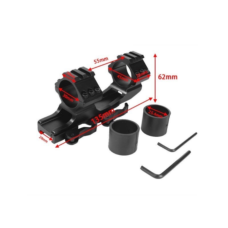 Anillas con montura para miras telescópicas. Compatible con diámetros de 25 o 30 mm, en una forma que funcionará correctamente con la mayoría de visores del mercado. Disponen de aspiración QD para una extracción rápida y la pieza está fabricada en aluminio CNC para conseguir una gran ligereza y robustez. Estéticamente es un modelo espectacular que logrará despertar la estética de nuestro fusible.