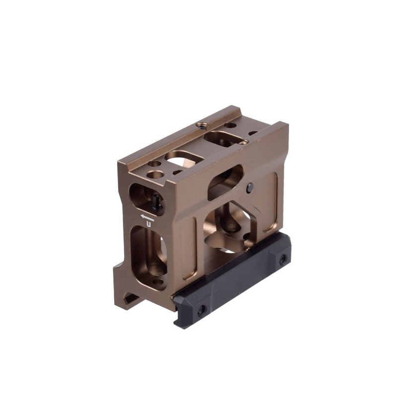 Montura de elevación para punto rojo tipo T1/T2. Tiene la función de elevar el red dot por encima de la línea del Picatinny una altura de 41,5 mm y hacer mucho más fácil el apuntado cuando se usa un dispositivo de visión nocturna, evitando una inclinación excesiva del cuello.