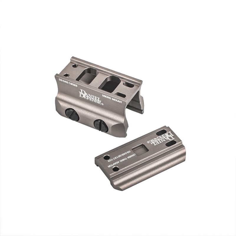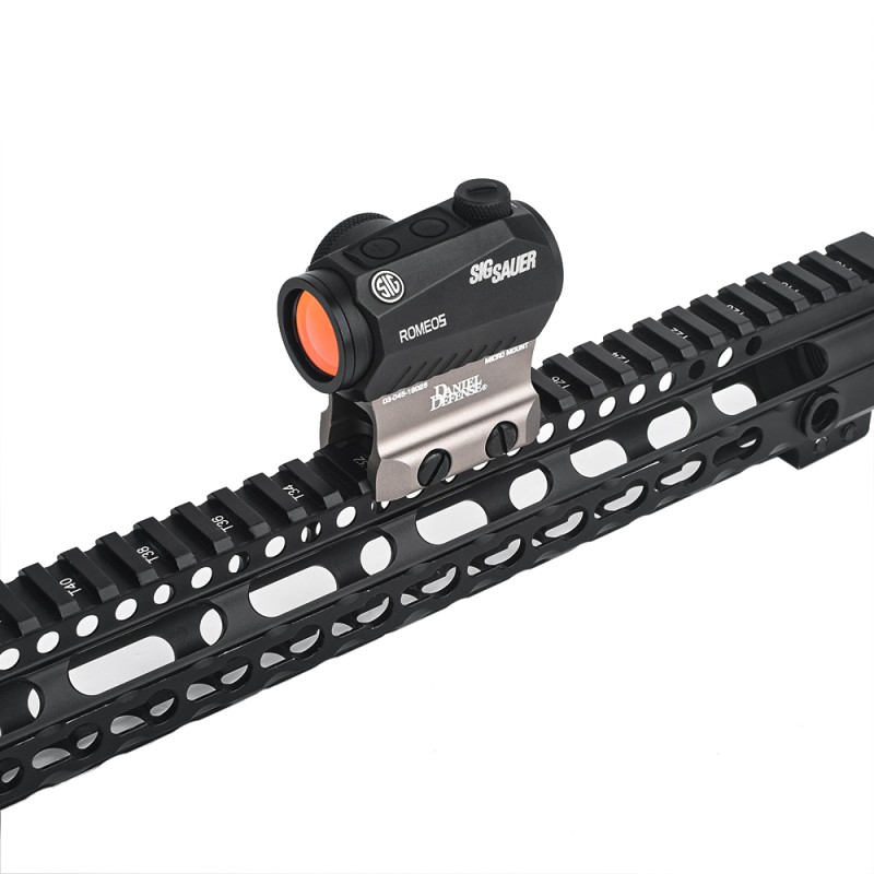 Montura de perfil bajo para red dot tipo T1, hecho en aluminio y con los marcajes de Daniel Defense es la montura preferida de todos aquellos que buscan un paralaje perfecto entre el punto rojo y la bola con un toque de realismo y calidad que pocas monturas tienen en el mercado del Airsoft.