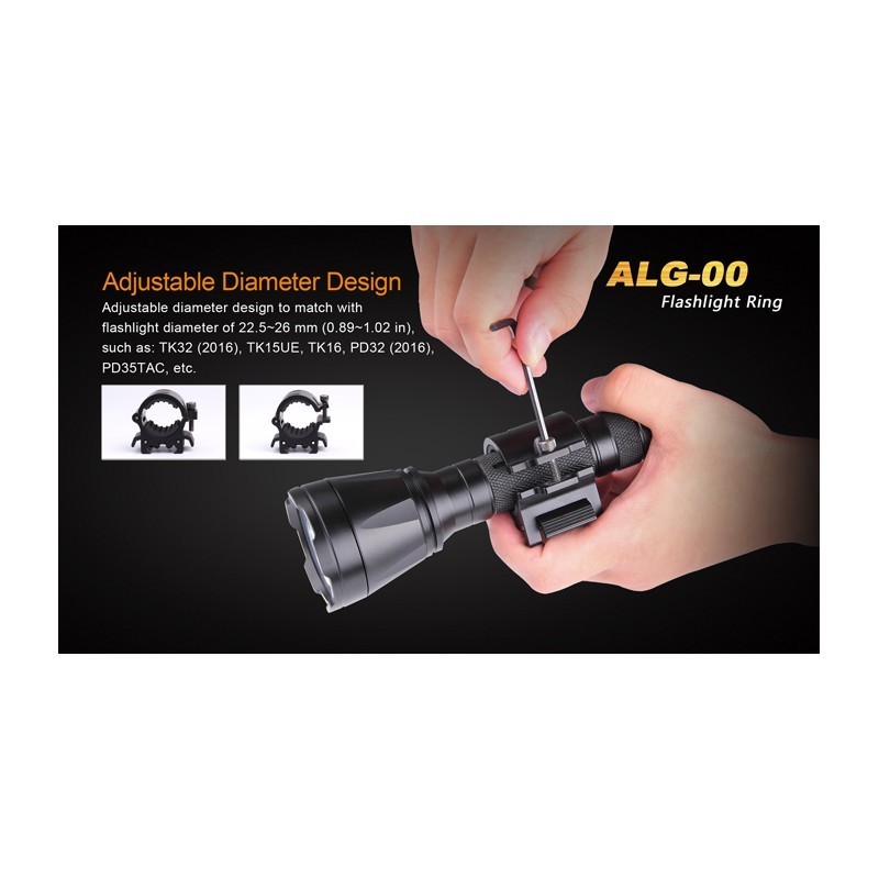 With this new adjustable diameter design, you will be able to mount many different sizes of flashlights.