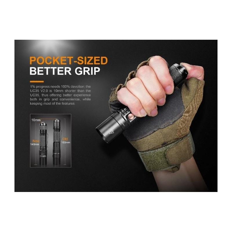 The UC35 V2.0 is a compact, pocket-sized, Micro USB rechargeable tactical flashlight with exquisite appearance, a powerful beam and one-handed operation.
