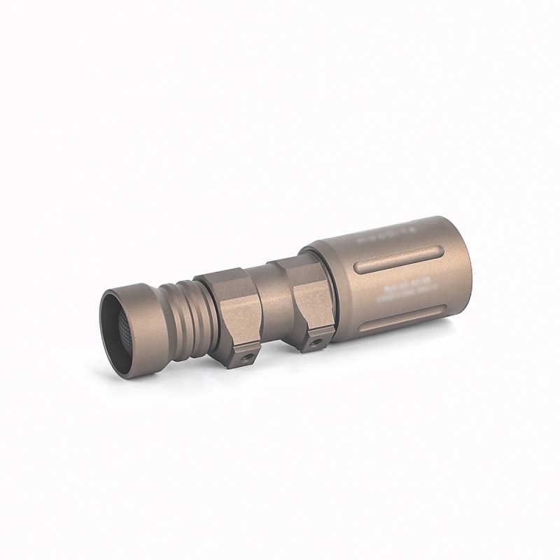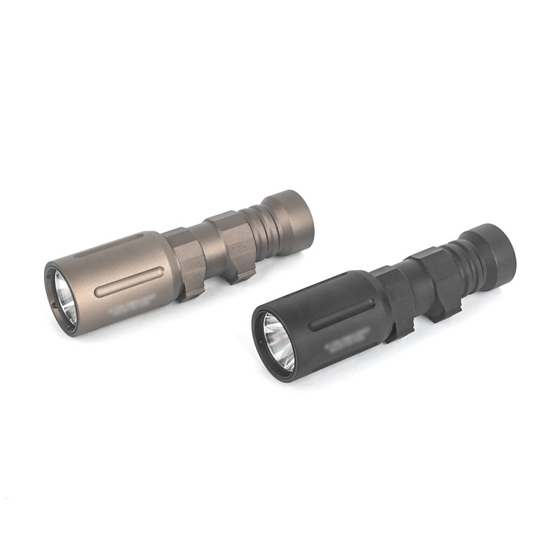 Una de las linternas más increíbles que han pasado por nuestras manos, usadas por lo famosos GBRS estas linternas de calidad excelsa son el siguiente nivel en cuanto a iluminación. Con sus 1000 lúmenes de potencia esta linterna es capaz de hacer de día cualquier zona por oscura que parezca. Funciona con una batería 18650 y cuenta con un anclaje para riel Picatinny, siendo accionada con un pulsador que tiene en la base de la misma.