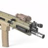 Es quizás junto al DBAL mini el designador láser más compacto del mercado. Fabricado en polímero de alta calidad es una de las opciones más interesantes cuando de partidas nocturnas se trata. Posee varios modos de funcionamiento entre las cuales se encuentra una linterna de luz blanca, modo estroboscópica y por supuesto un láser IR que nos permitirá apuntar con un dispositivo de visión nocturna sin la necesidad de usar puntos de mira para un tiro mucho más veloz.
