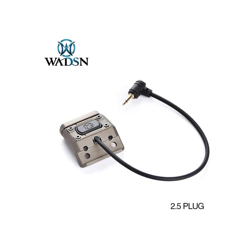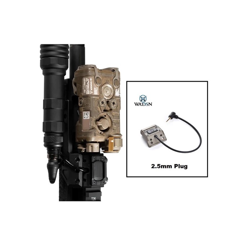 Interruptor remoto que se puede acoplar al riel Picatinny con el designador láser (PEQ) que se puede activar de manera cómoda con enchufe de 2,5 mm. Tiene función de pulsación momentánea o continua según apliques 1 clic o 2 clics seguidos. Con Marcajes de Unidad.