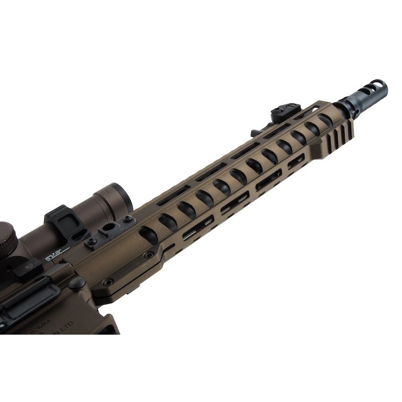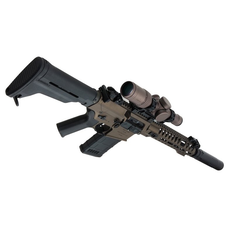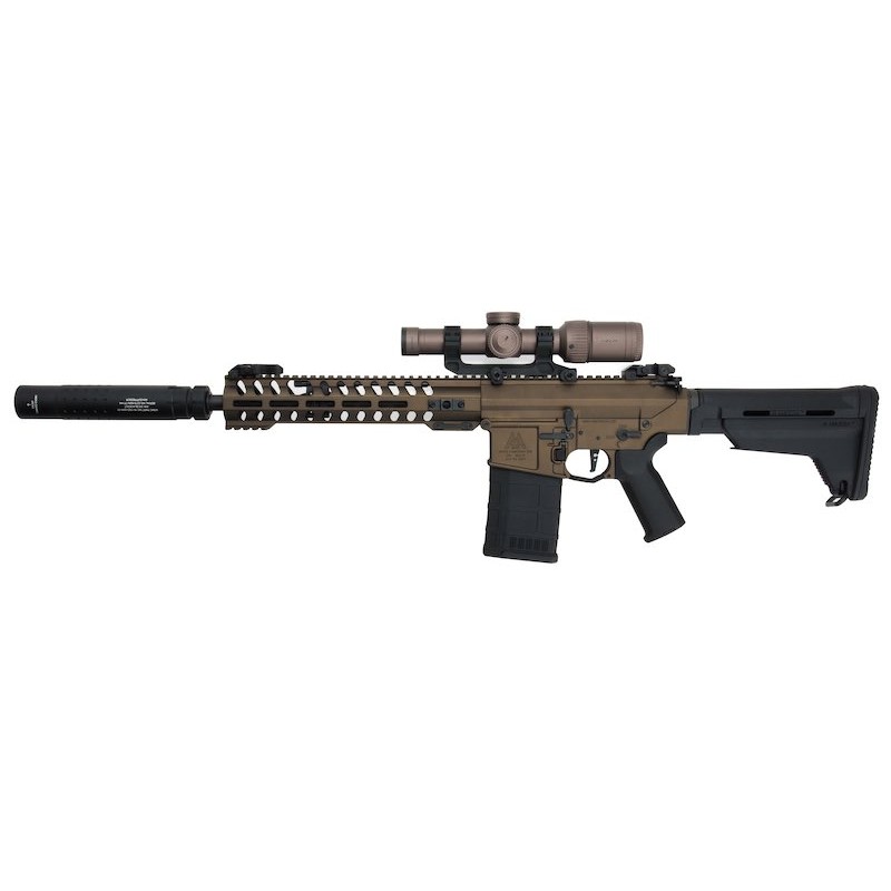 La inclusión de una mira de aumentos, 2 cargadores mid-cap de estética 7.62 y un supresor brutal con sistema de enganche rápido y marcajes hace de este rifle una de las mejores opciones y más interesantes en cuanto a calidad-precio.