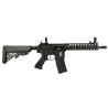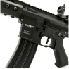 Con un cuerpo construido en resistente fibra de nylon con múltiples detalles como el "mag release" ambidiestro que nos permitirá extraer el cargador de forma más rápida y cómodo en el caso de ser zurdo, pistolete ergonómico que hará que empuñarla y encarar con ella sea un movimiento instintivo y cómodo y un guardamontes personalizado y múltiples relieves en el cuerpo que le darán ese plus de estética y calidad que buscamos para nuestras réplicas. Además la réplica cuenta con un guardamanos metálico realizado con tecnología CNC en la que se pueden apreciar múltiples ventilas y aberturas que no sólo reducirán el peso de nuestra réplica, sino que además le darán ese toque agresivo que no dejará a nadie indiferente.