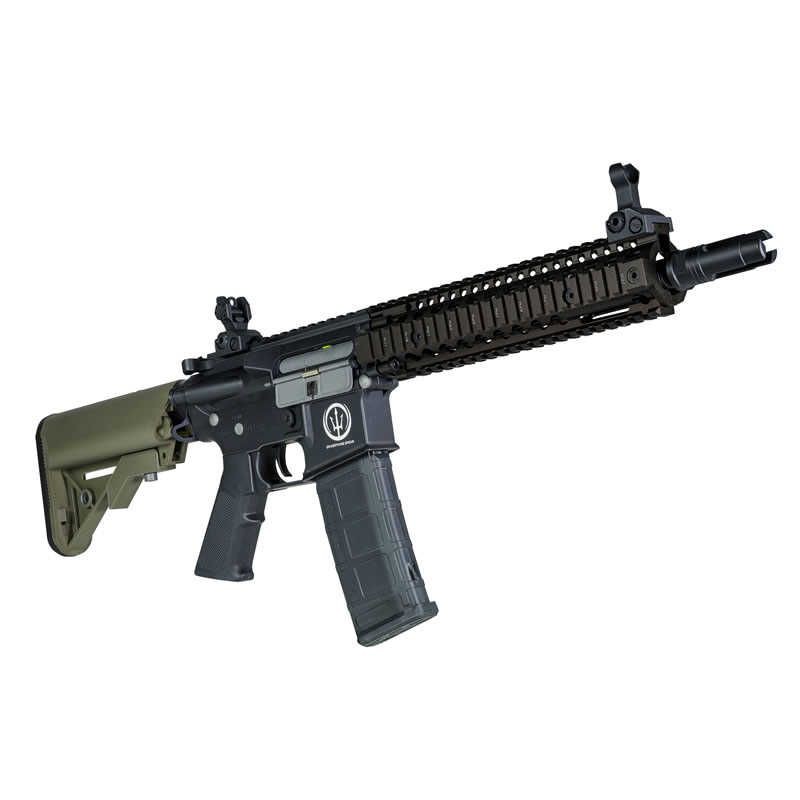 Este modelo que replica al Mk18 es uno de los más preciados por su estética clásica pero funcional que combina una cuerpo robusto de AR-15 con un guardamanos tipo Daniel Defense de 9,5" que tiene gran cantidad de raíles Picatinny donde poder poner una extensa variedad de accesorios tácticos.