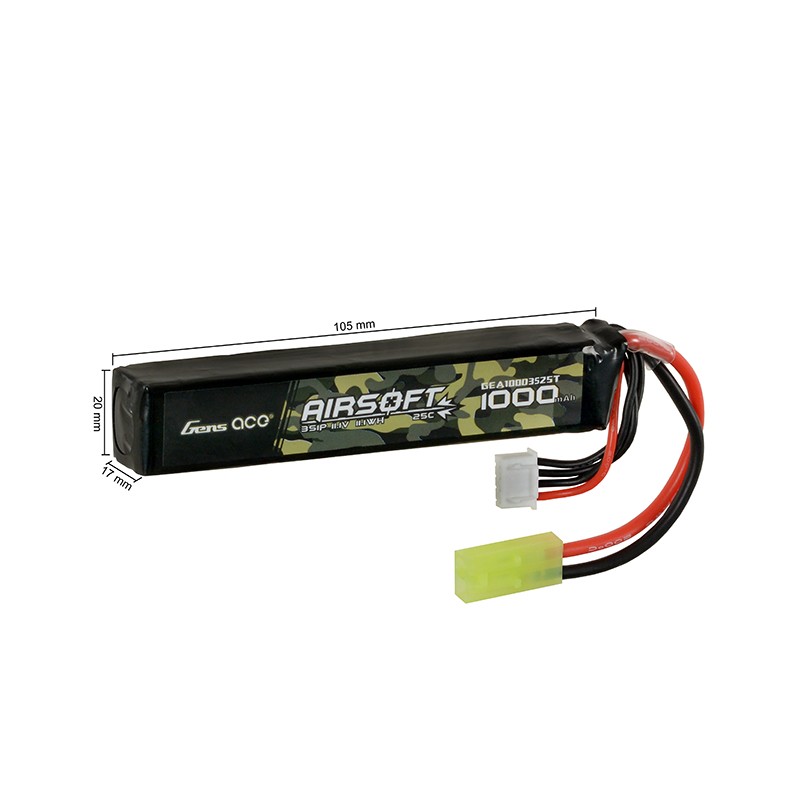 Gens ace 25C 1000mAh 3S1P 11.1V Airsoft Gun Lipo Batería con mini enchufe Tamiya Adecuado para tubos de protección y AEG donde el espacio de la batería es limitado sin sacrificar la potencia y se adapta a acciones LE como M4, etc.